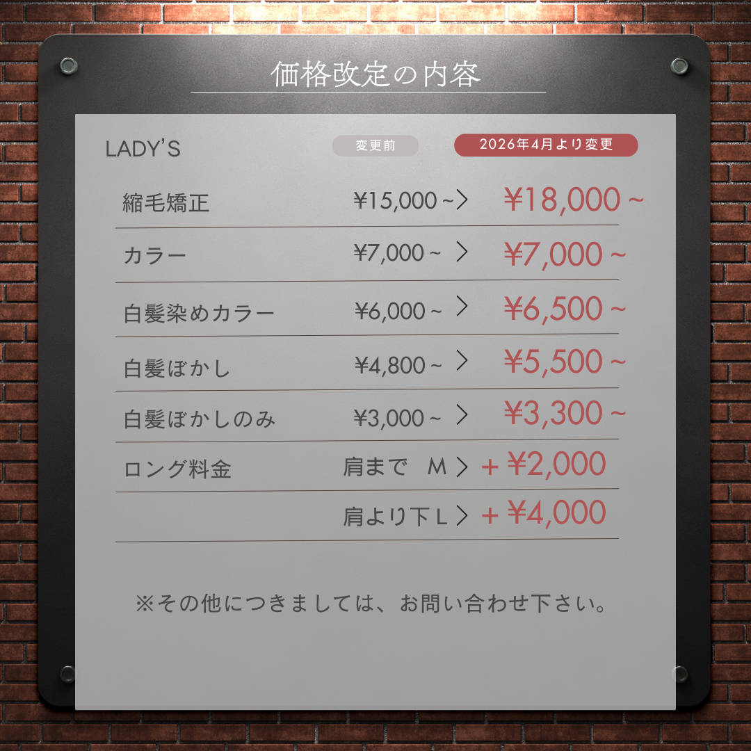 当店ではこの度、材料費や諸経費の上昇に伴い